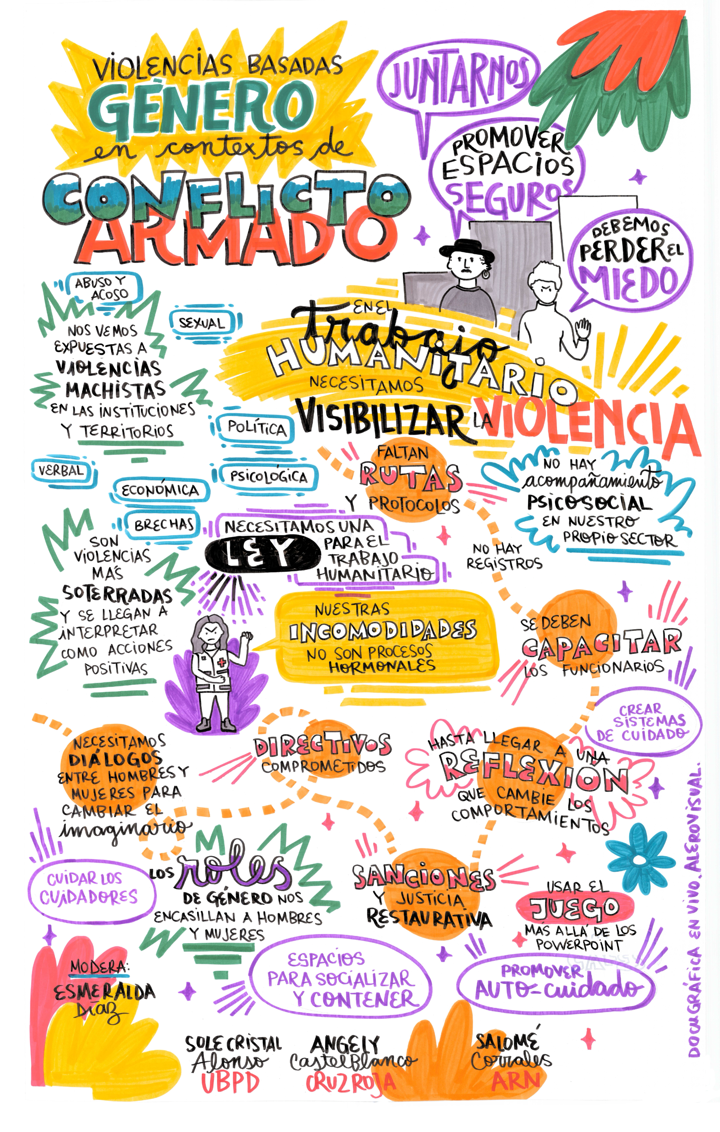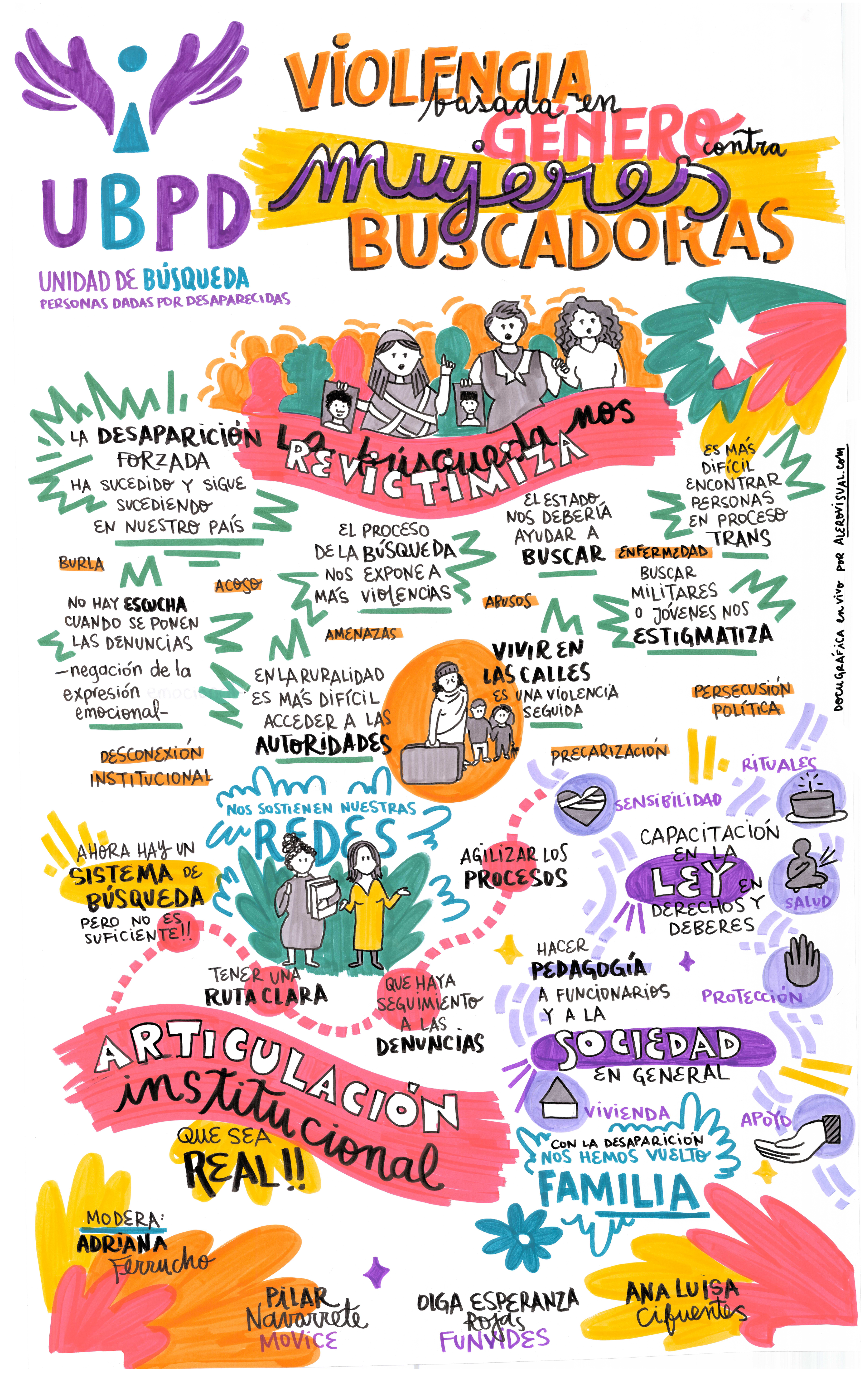 A la par del conversatorio, la ilustradora Alejandra Robledo (@alero_visual) realizó en vivo dos docugrafías sobre la temática del conversatorio. Las compartimos para que conozcan las concluciones más importantes del evento: