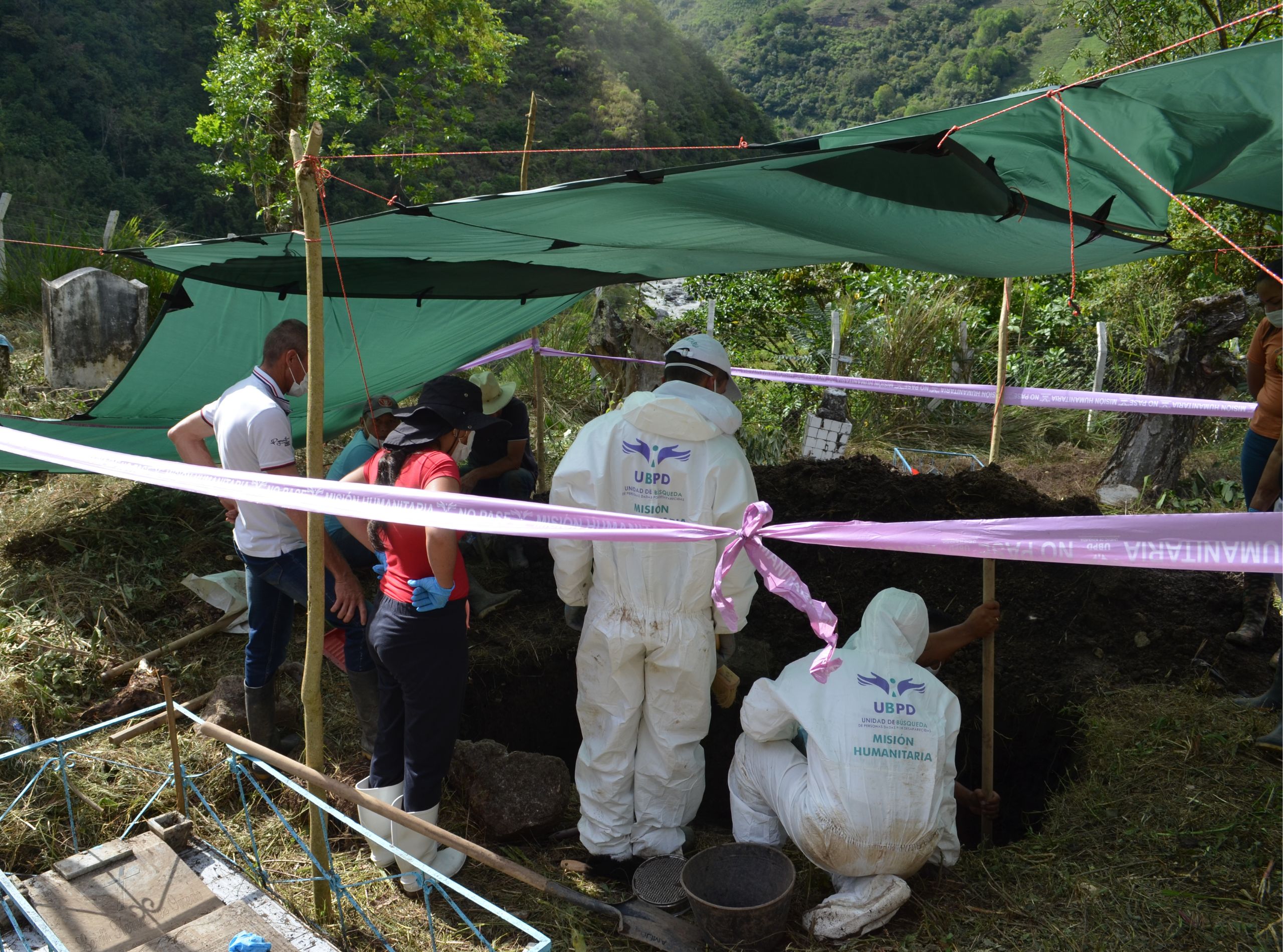 La investigadora Claudia Beltrán esperó a que Karen terminara de conversar con la tumba de su madre para explicar la manera en que se intervendría el cementerio de San José de las Hermosas, con el objetivo de recuperar el cuerpo de Jehimy. Presentó al equipo forense e investigativo en el Tolima de la Unidad de Búsqueda de Personas dadas por Desaparecidas (UBPD), entidad que surgió del Acuerdo de Paz firmado en 2016 entre el Estado colombiano y las hoy extintas Fuerzas Armadas Revolucionarias de Colombia (Farc). Su misión es buscar a quienes desaparecieron en el marco del conflicto armado antes del 1 de diciembre de 2016, fecha en que comienza a materializarse lo pactado entre las dos partes.
